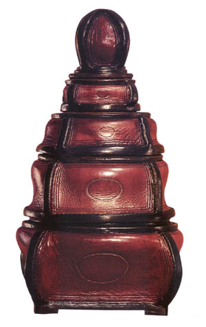 Peter Main, a pioneer on leathercrafts in Australia, not only the master in his own country, also possesses a good reputation internationally. The objects of his work are digested from the natural resources of his motherland, such a characteristic establishes an unique art in terms diplomacy. By using the wood carving technique for a foundation, he is an expert to play with vegetable tanned leather with very delicate carving and multiple assembling. His stylish dry brush and detail paintings realistically recreate color dimension and lighting effect in his own language. He is highly self-disciplined and believes that new knowledge, new concept and new technique are the principles to lead his students. My comments to his work is, "The secret of sky and the glamour of could is in mind. The mind is the instrument."