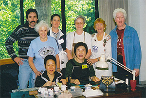 The「20th Anniversary Conference 2002」was a small but beautiful union. Though the participants were less than before, their consciousness of enthusiasm and sharing was incomparable vigorous. It was almost impossible to complete the exchanges of cultures, techniques and ideas during such haste; but as a fact a better comprehension for leather crafts was stimulated by brainstorming and encouraging through each other's creation. Later on the mutual influence and appreciation will faintly reveal from our work. Such a warm interaction strongly vibrates my heart. Much thankfulness